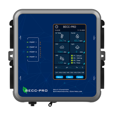 | Número Máximo de Conexiones de Sensores | El número total no excede de 3 y la corriente total no excede de 0.5A, se puede conectar a: • 1x Sensor 4 en 1 (BLS-4) • 1x Módulo EC/PH (BSB-II) (Opcional) • 1x Módulo de detección de luz constante (BLS-PAR) (Opcional) |