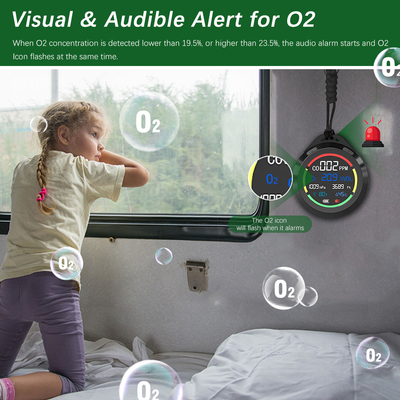 [6-en-1 y Diseño portátil] RV detector de monóxido de carbono detecta CO, O2, presión atmosférica, altitud, temperatura, humedad en tiempo real.Se puede poner en el bolsillo fácilmenteAdemás, tiene un cordón de 7.8 pulgadas, puede colgarse y ponerse de pie.