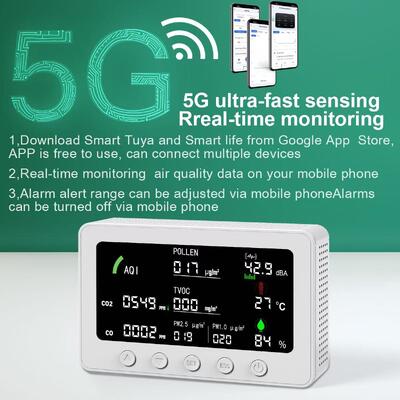 | Uso previsto | Detectar y monitorear digitalmente en tiempo real: Polen, CO2, CO, VOC, PM2.5, PM1.0, temperatura y humedad |